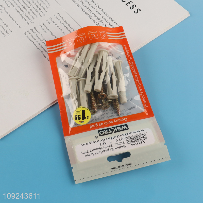 Good Quality 8 Set Plastic Drywall Anchors and Flat Head Screws Set