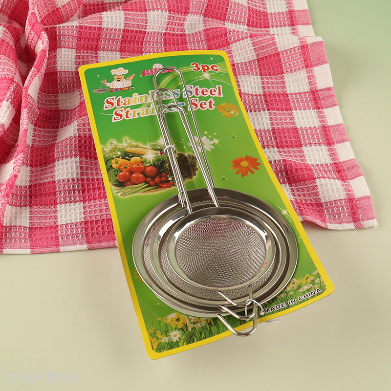 Hot Selling 3 Pieces Stainless Steel Fine Mesh Strainers Kitchen Wire Strainers