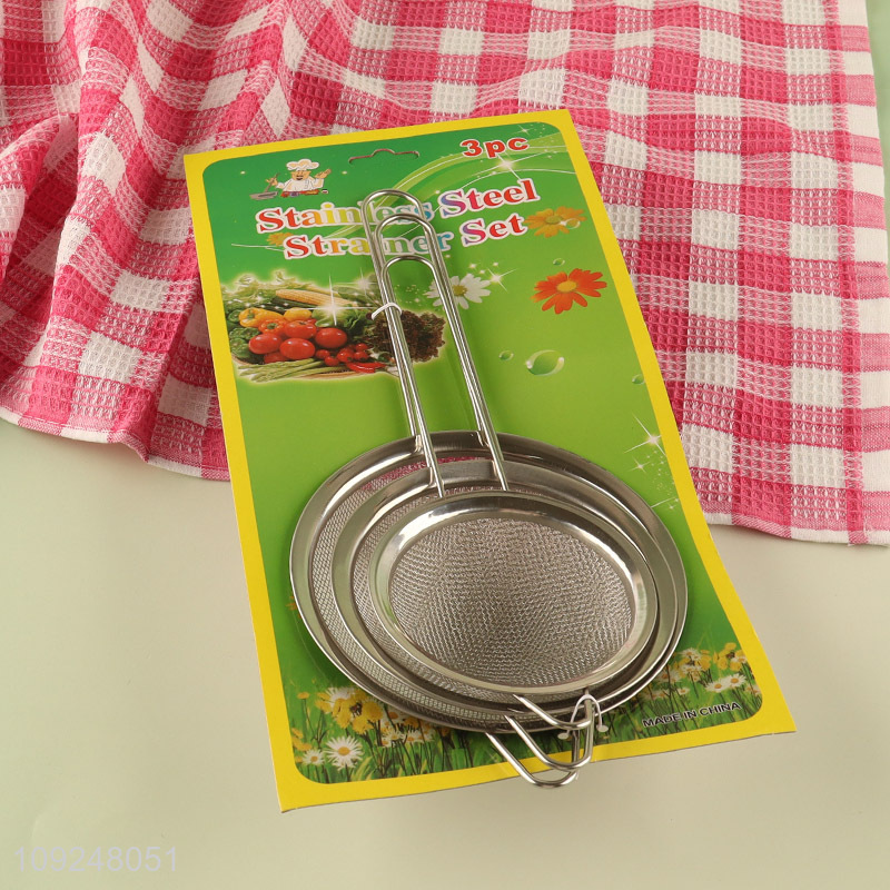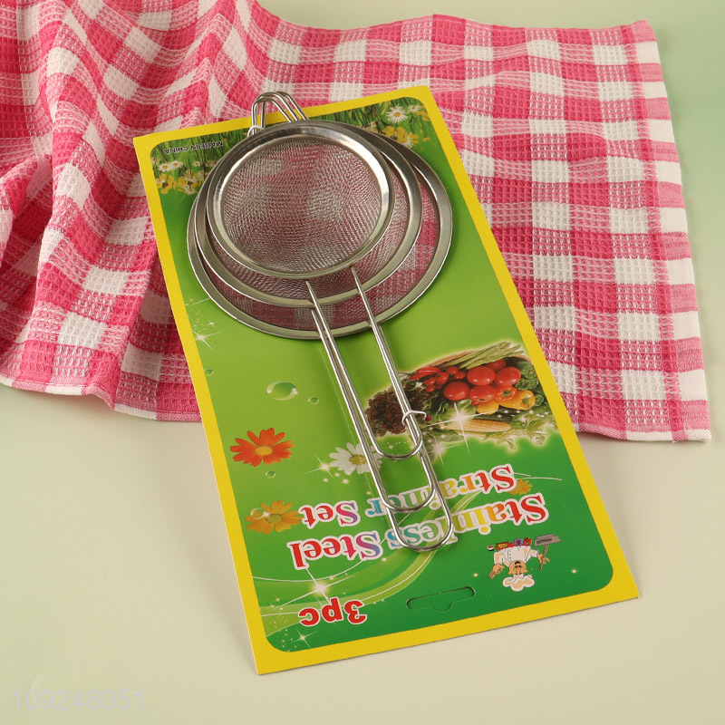 High Quality 3 Pieces Stainless Steel Fine Mesh Strainers Sifters for Kitchen