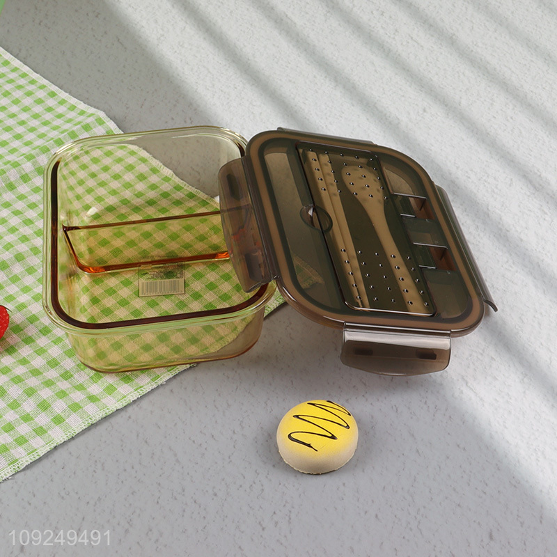 Low price rectangle glass food container preservation box lunch box with tableware