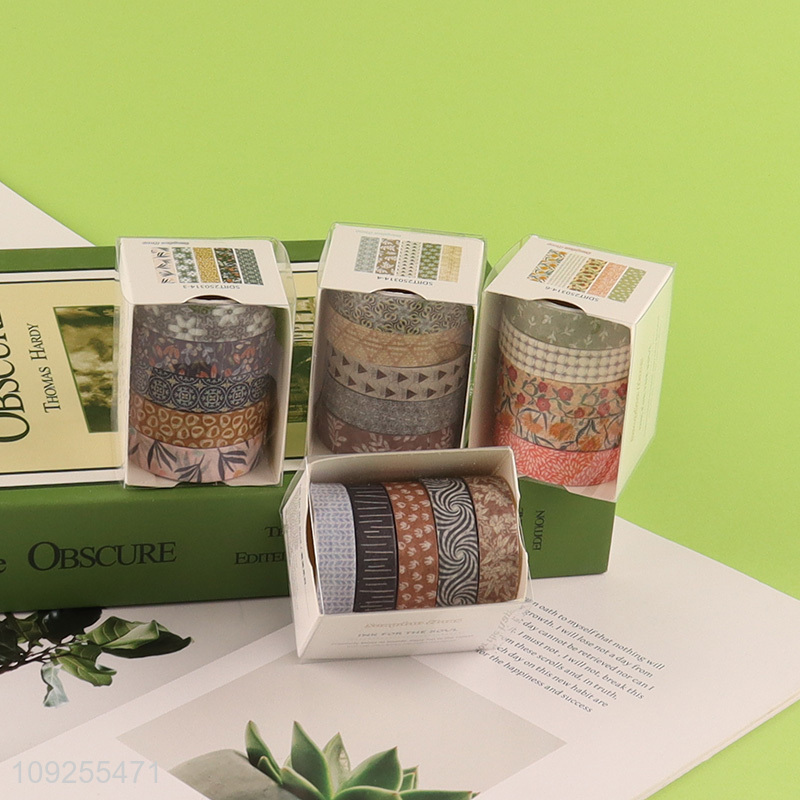 Good Quality 5 Rolls Washi Tape Set for DIY Arts & Crafts, Journaling & Scrapbooking