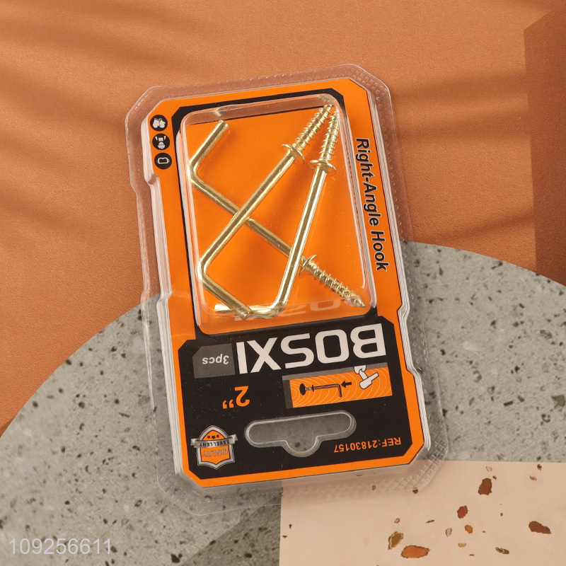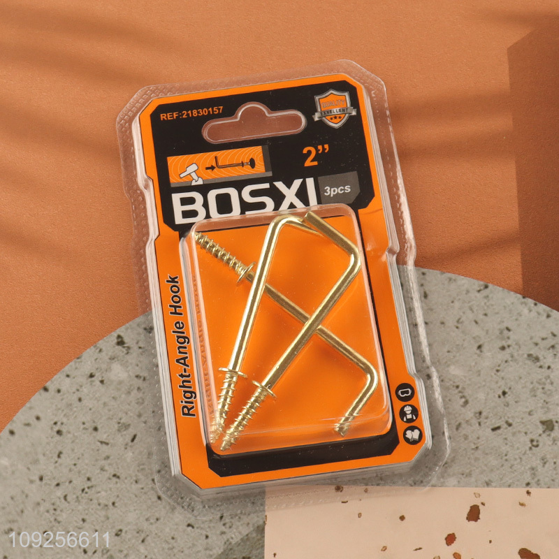 New Arrival 3 Pieces Screw-in Hooks L Shaped Screw Hook Right Angle Metal Hooks