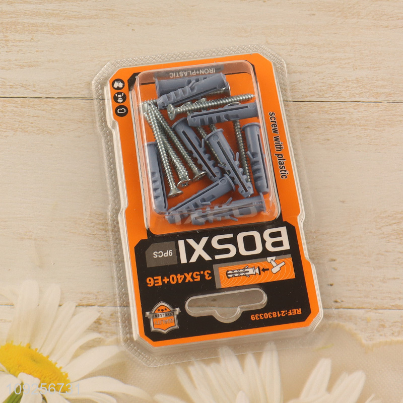 High Quality 9 Pieces Plastic Wall Anchor and Screw Set Drywall Anchor Kit