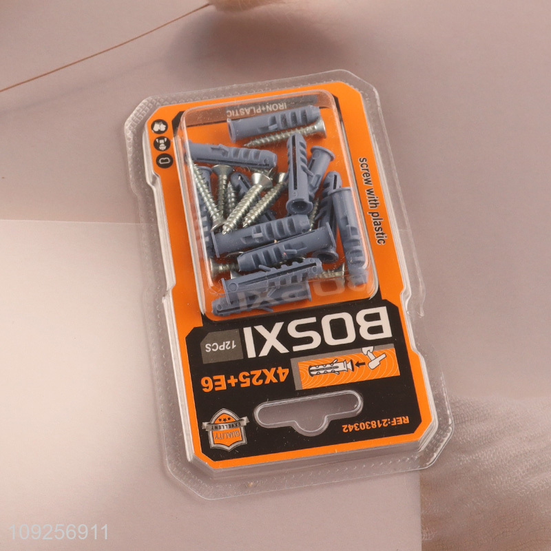High Quality 12 Pieces Plastic Wall Anchor and Screw Set Drywall Anchor Kit