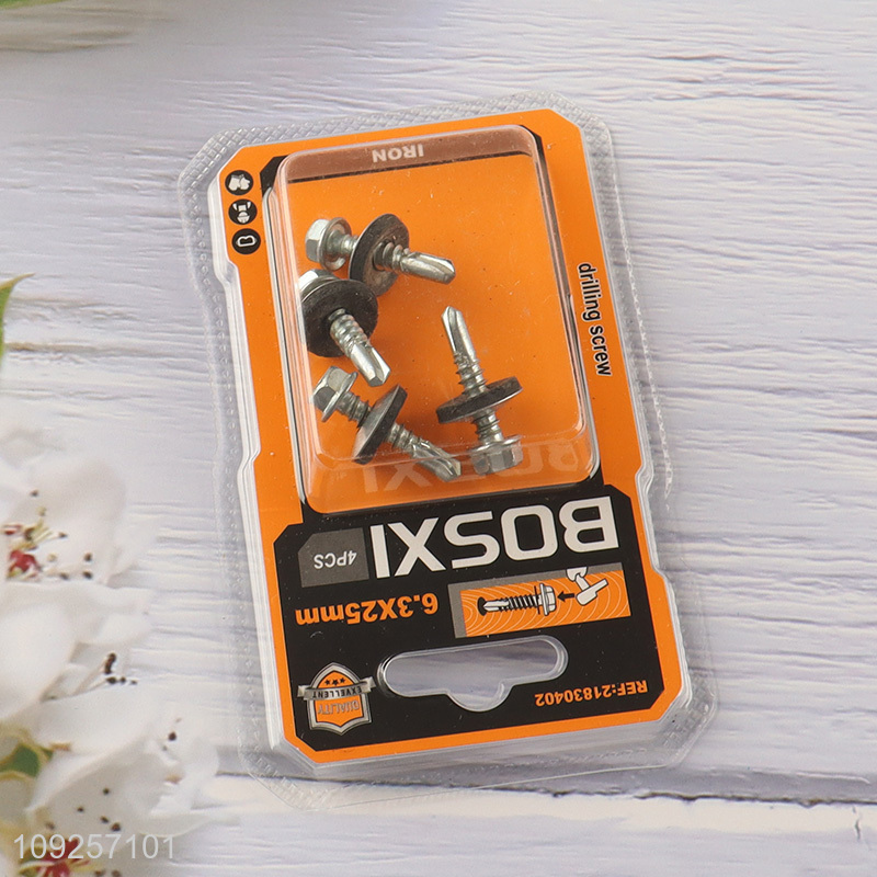 New Product 4 Pieces Iron Self Drilling Screws with Washer for Plastic Metal