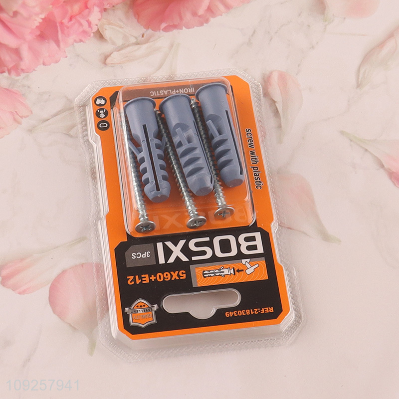 New Product 3 Pieces Plastic Wall Anchor and Screw Set Drywall Anchor Kit