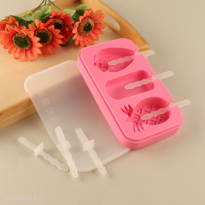 Factory Price Silicone Popsicle Molds 3-Cavity Ice Cream Molds Wholesale