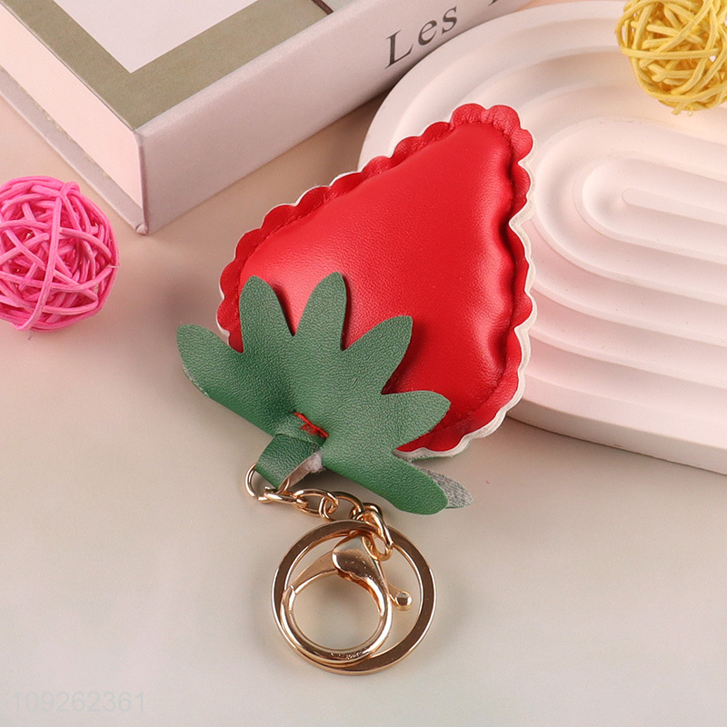 China Imports Strawberry Keychain PU Leather Bag Charm PU Leather Car Keychain for Women