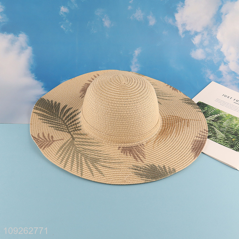 High Quality Summer Straw Hat Outdoor Leaf Printed Floppy Straw Hat
