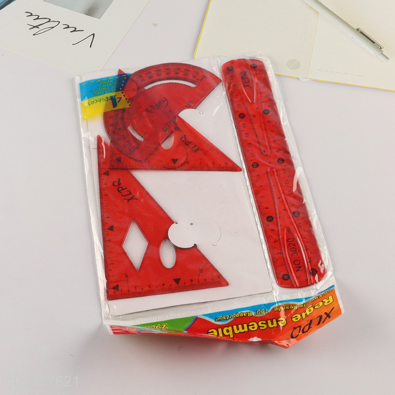 Top selling school kids stationery plastic ruler set wholesale