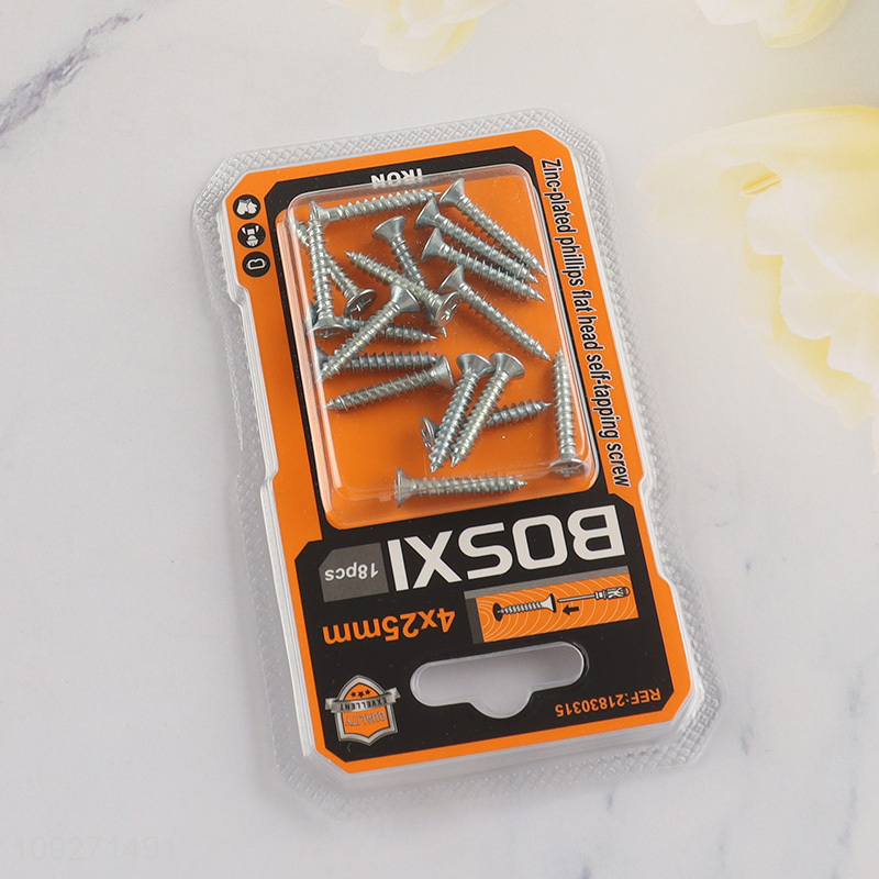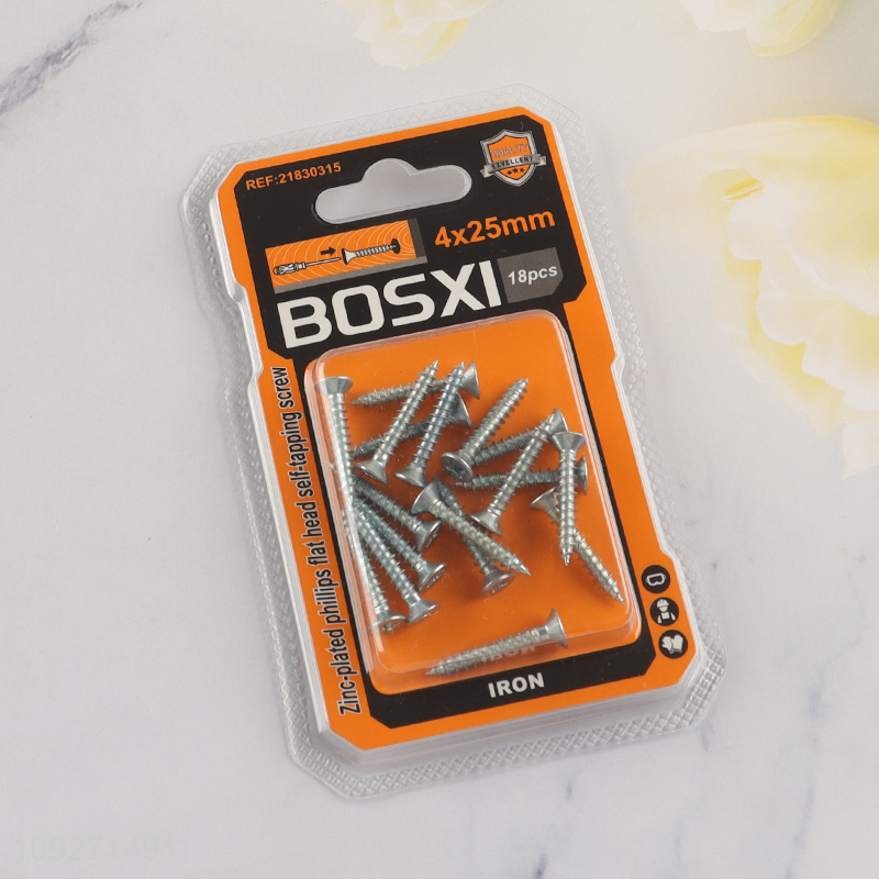 High quality 4*25mm zinc-plated phillips flat head self-tapping screws