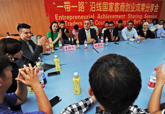 Photo taken on Sept. 8, 2018 shows an entrepreneurial achievement sharing session at Yiwu Industrial and Commercial College in Yiwu, east China's Zhejiang Province.