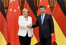 Chinese President Xi Jinping (R) shakes hand with German Chancellor Angela Merkel (L) before their meeting at the West Lake State House on the sidelines of the G20 Summit, in Hangzhou, Zhejiang province, China, September 5, 2016.